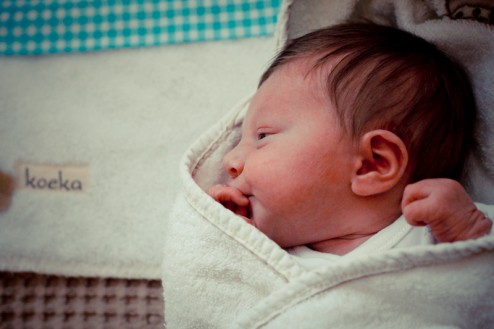 Voor en na het verschonen mag Fenne altijd even ‘proefliggen’ in haar ledikantje. Deze foto kan zo in een catalogus van Koeka… Wat een plaatje!