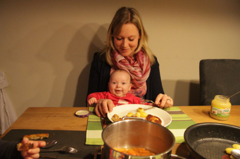 [facebook_ilike]Ninte wil altijd heel graag bij ons aan tafel zitten als we aan het eten zijn, dan roept ze net zo lang tot we ze erbij halen. Eenmaal op schoot bij mama (of papa) lacht ze weer volop natuurlijk!