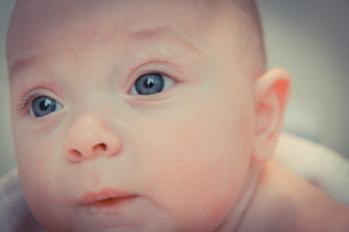 Na het schilderen even in badje, alle verf er weer af en mooie kleertjes aan voor het feest van oma Diny. Ondertussen houdt Ninte graag alles in de gaten…